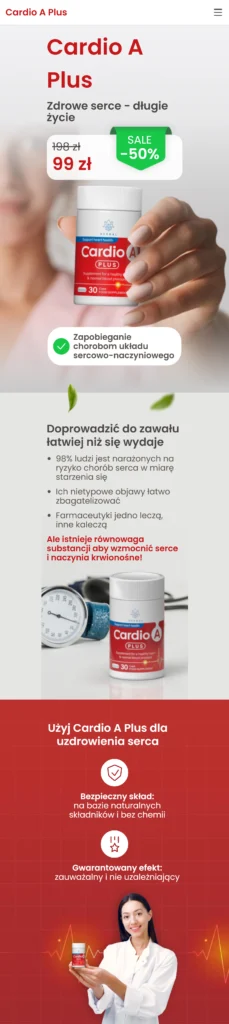 Cardio A Plus to rozwiązanie cieszące się zaufaniem wielu użytkowników. W ramach obecnej kampanii produkt jest dostępny z natychmiastową wysyłką. Formuła preparatu oparta jest na starannie dobranych składnikach, zapewniając najwyższą jakość obsługi klienta.