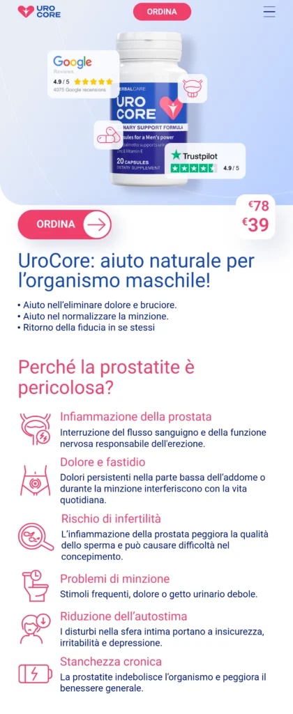 Il prezzo originale di €78,00 è stato ridotto del 50%. Oggi puoi ordinare Urocore a soli €39,00, risparmiando esattamente €39,00 sul tuo acquisto totale.